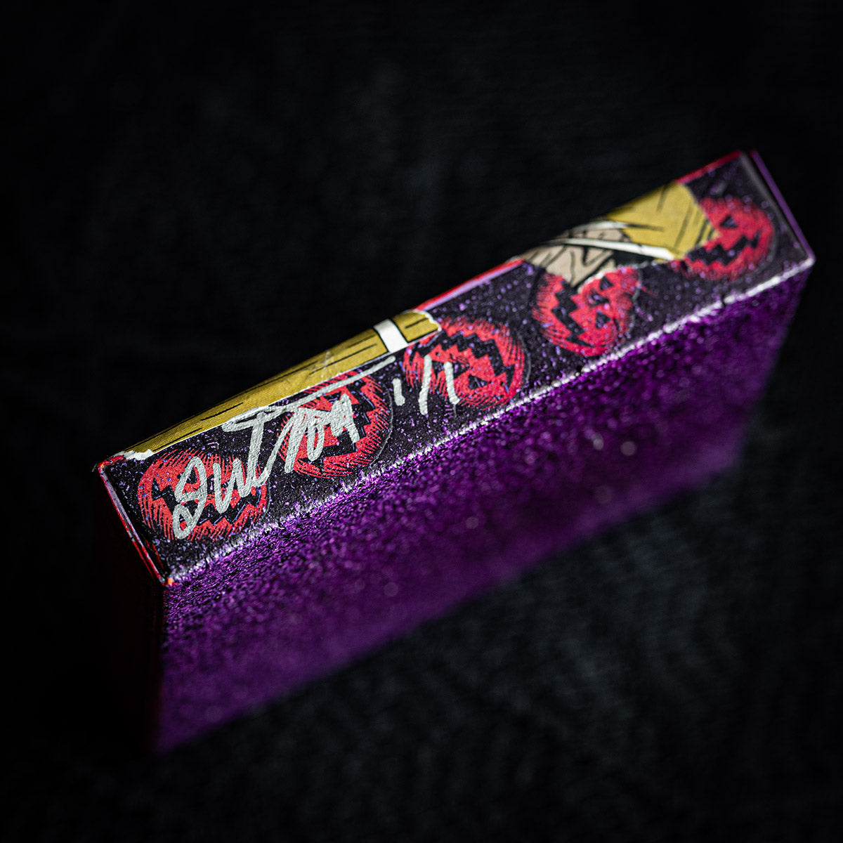 These MIXED PROCESS decks were hand made by Brad Fulton using vintage comic books from his collection to share the true spirit of Halloween. These are hand painted backgrounds with sealed comic book illustrations hand applied. Each hand collaged deck is signed “Fulton 1/1” on the side of the tuck box. Inside is a complete deck of 2025 October V2 Playing Cards.
