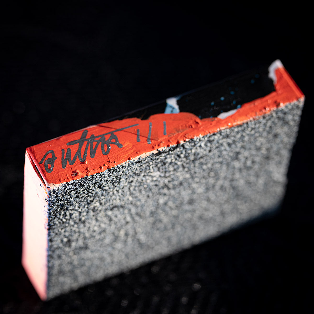 *THIS PARTICULAR 1/1 WAS CREATED UPSIDE DOWN TO MIMIC THE FEELING OF BEING PULLED INTO A GRAVE WITH THE UNDEAD. PAINTED A PARTICULARLY BEAUTIFUL SHADE OF HAND MIXED ORANGE SHERBERT.