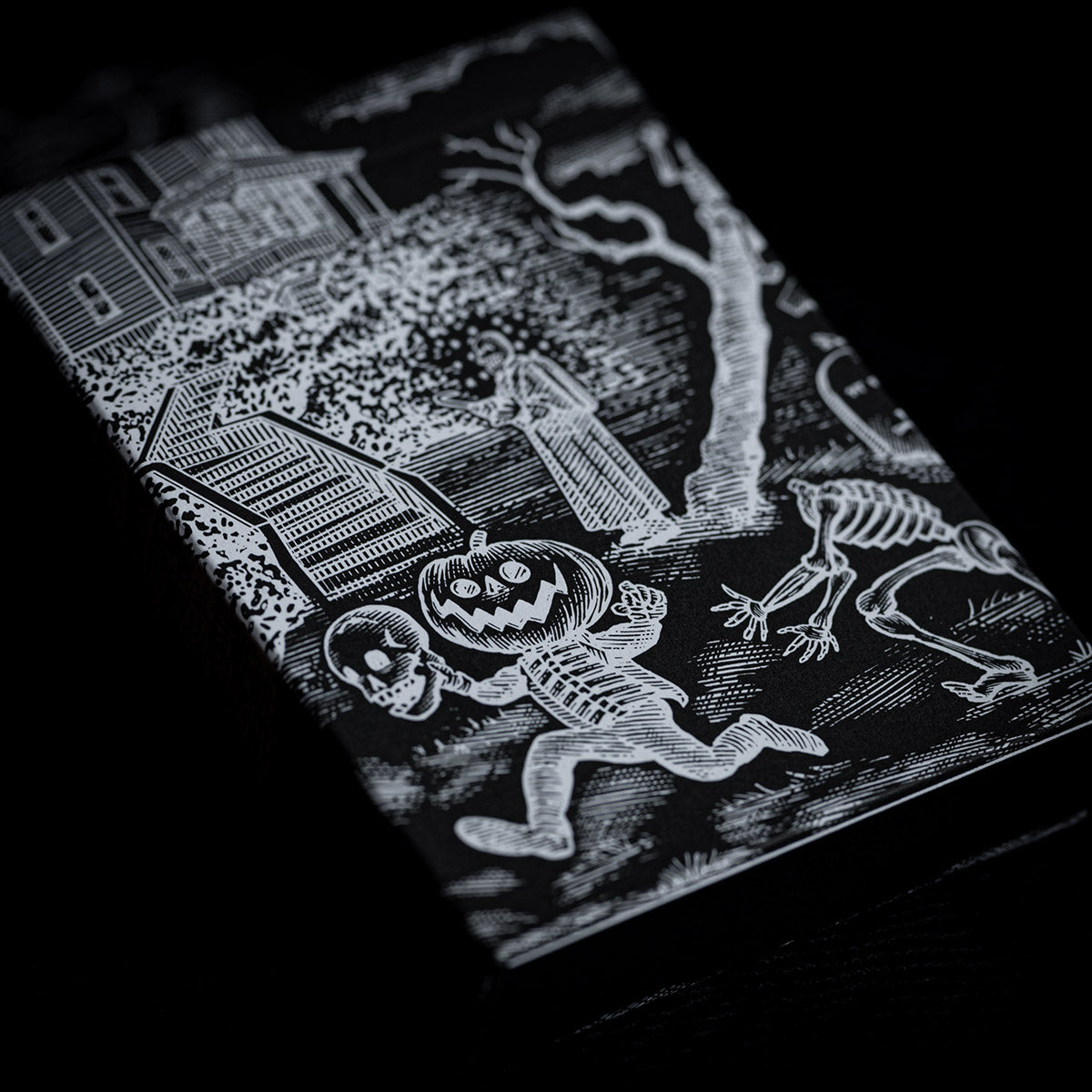 This first edition of October V2 features a striking black-bordered card back featuring our favorite Jack-O-Lantern prominently displayed holding his old friends. Every number and letter on the number cards was hand illustrated by Noble using a bone-like new Fulton Font. This is the best the October Universe has ever looked.